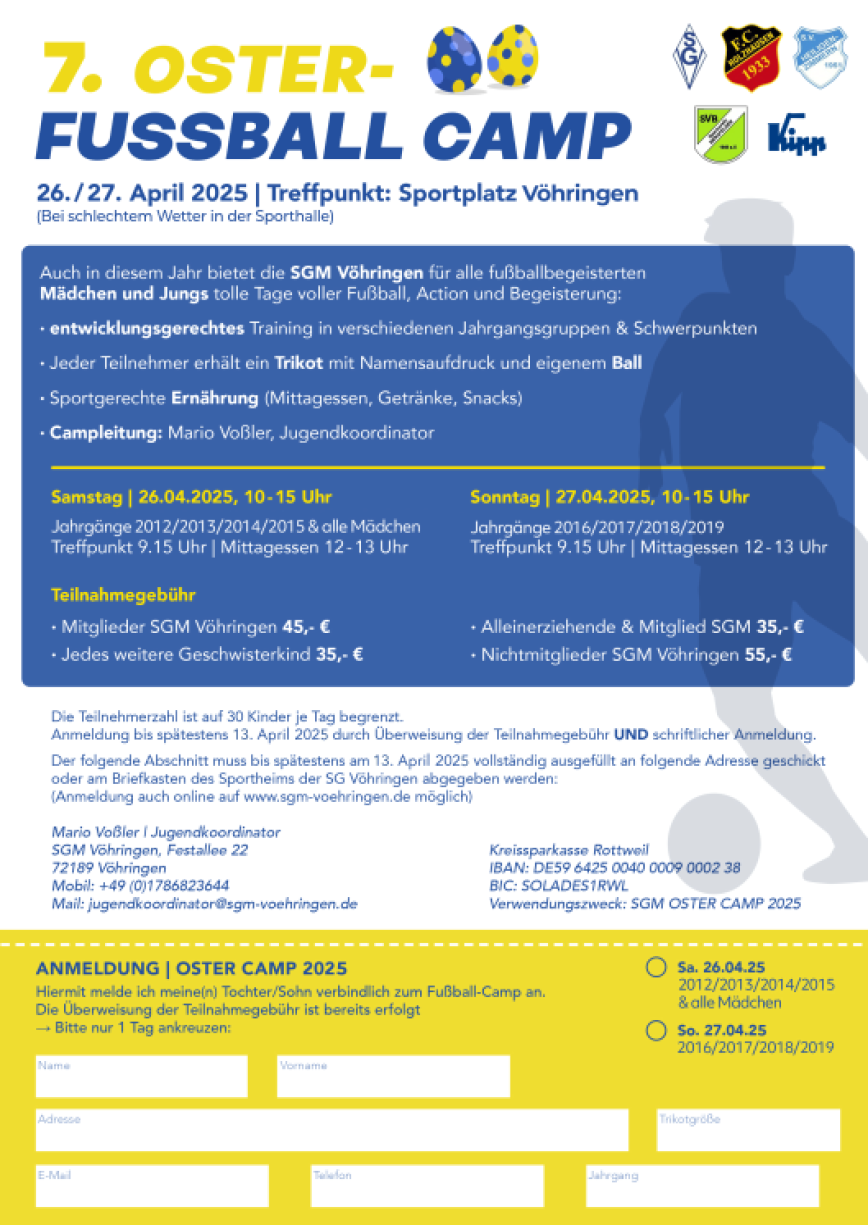 Interessenten melden sich mit einer kurzen Selbstauskunft und Rückrufnummer unter jugendkoordinator@sgm-voehringen.de